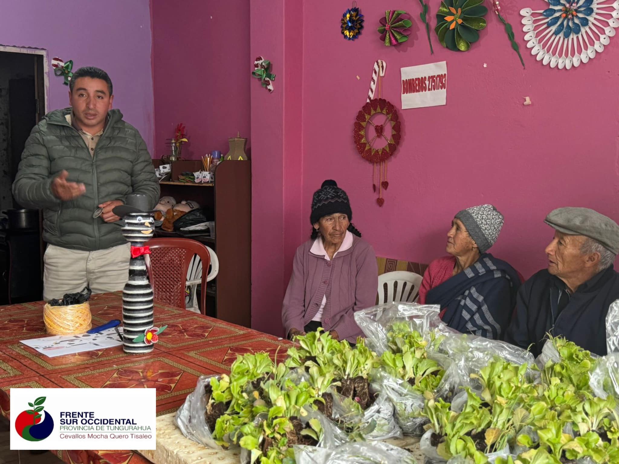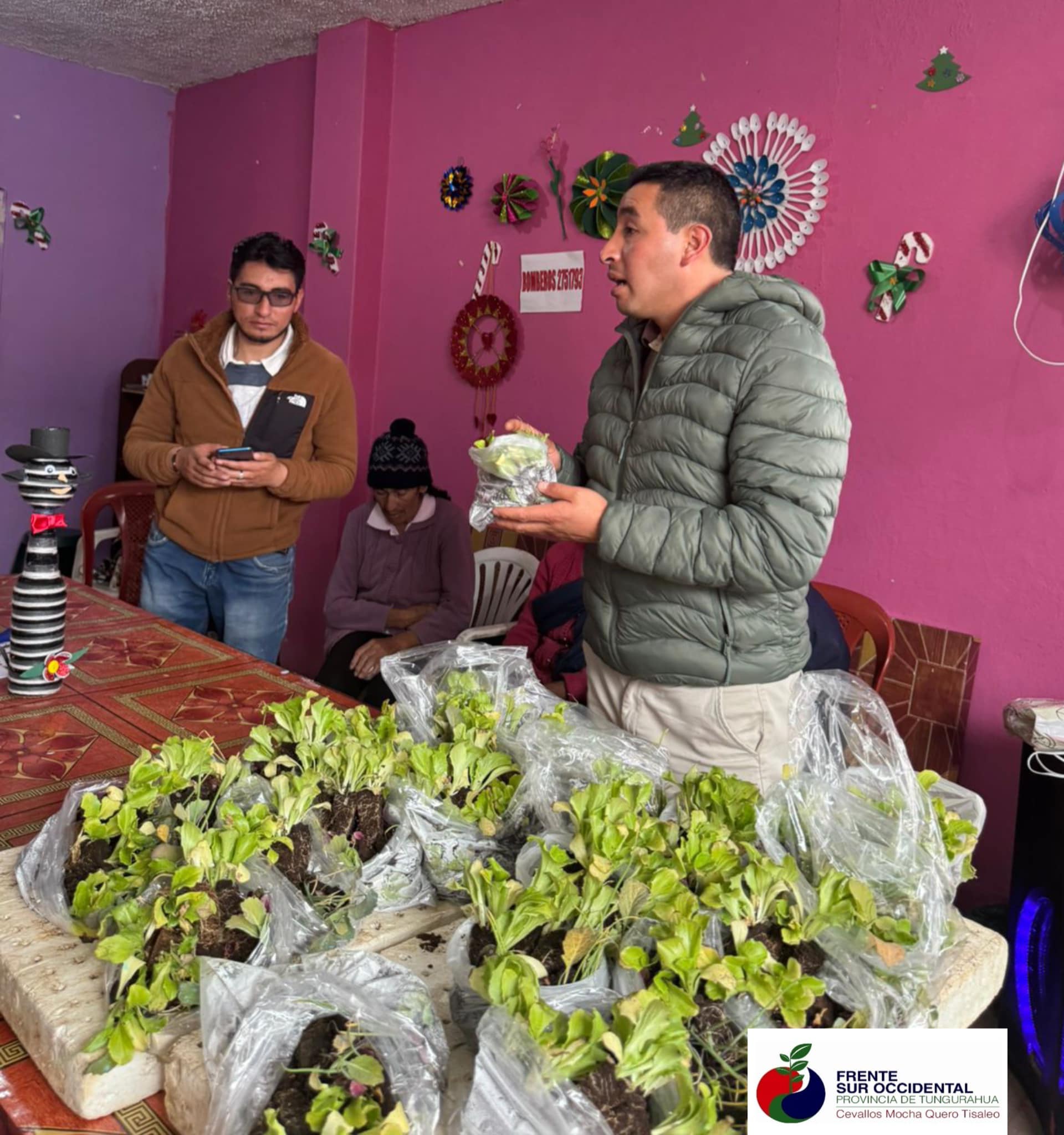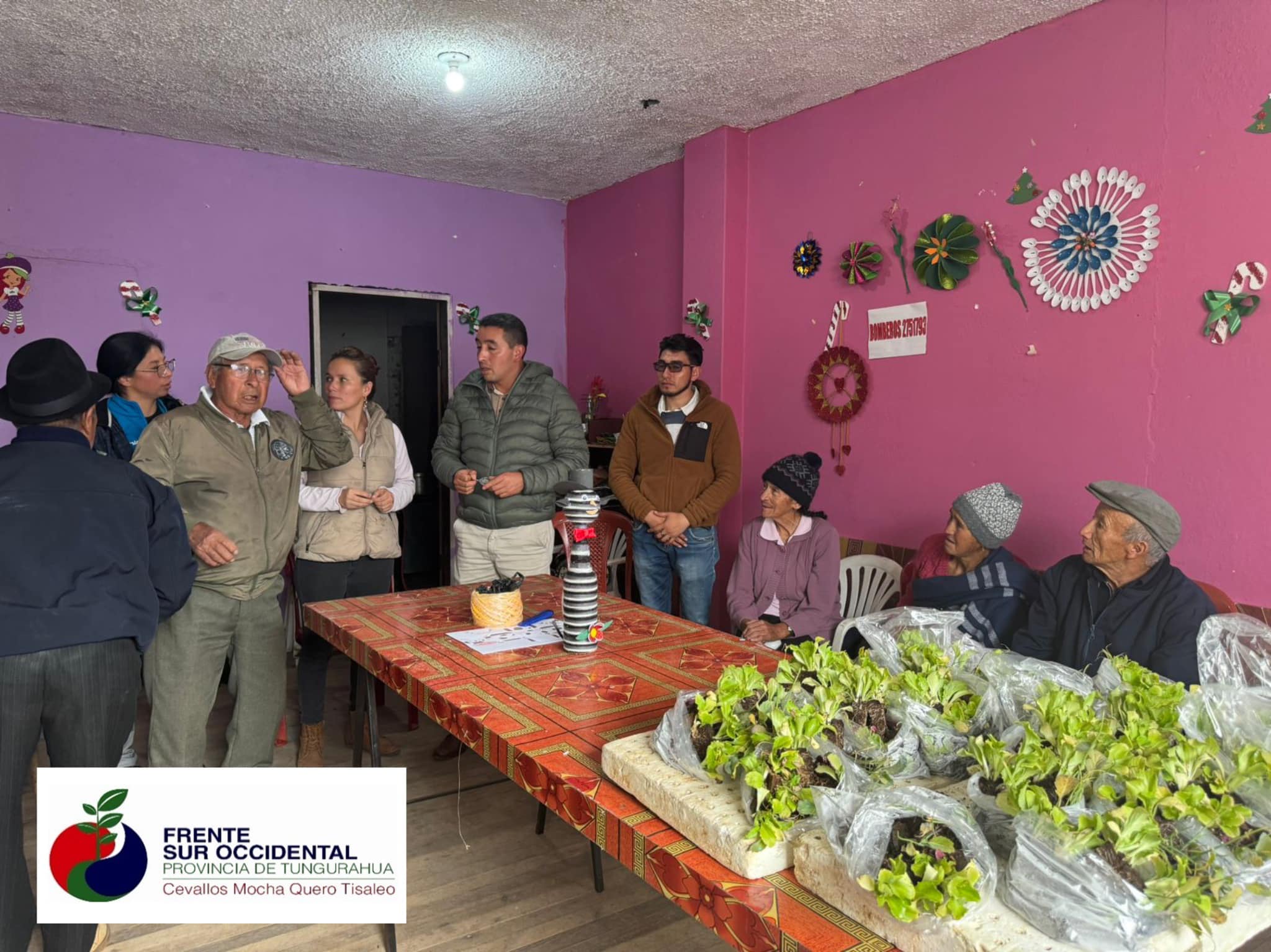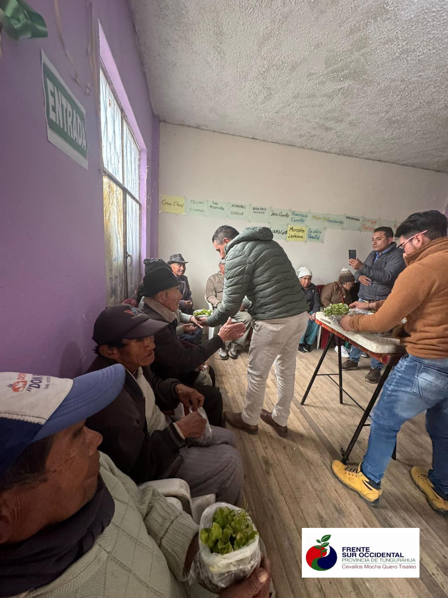 El día 4 de Junio en la coordinación del Ing. Milton Ramírez Alcalde del Cantón Tisaleo y técnicos del Frente Sur Occidental se realizó la entrega de plantulas de hortalizas ( cebolla, col lechuga y brócoli) a 30 beneficiarios del Adulto Mayor.